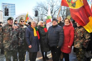 Aleksoto bendruomenės centro nariai tradiciškai vasario 16-ą pradėjo švęsti Vytauto Didžiojo karo muziejaus sodelyje.